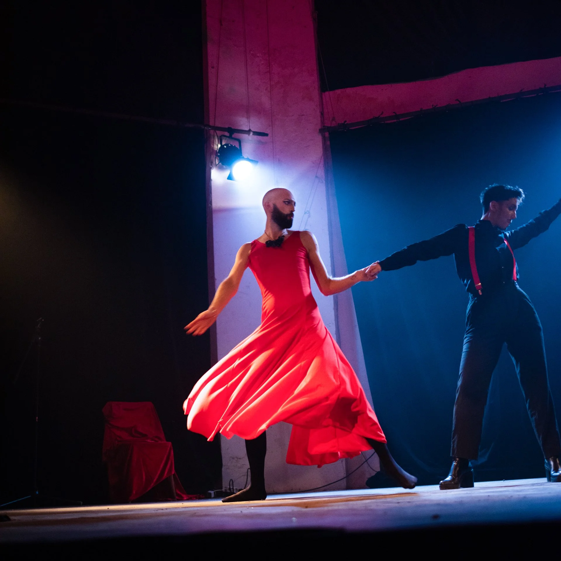 Hôtel Cabaret est un spectacle foisonnant et entraînant, peuplé de personnages hauts en couleur, de numéros et performances mêlant cirque, théâtre, chant et danse.
